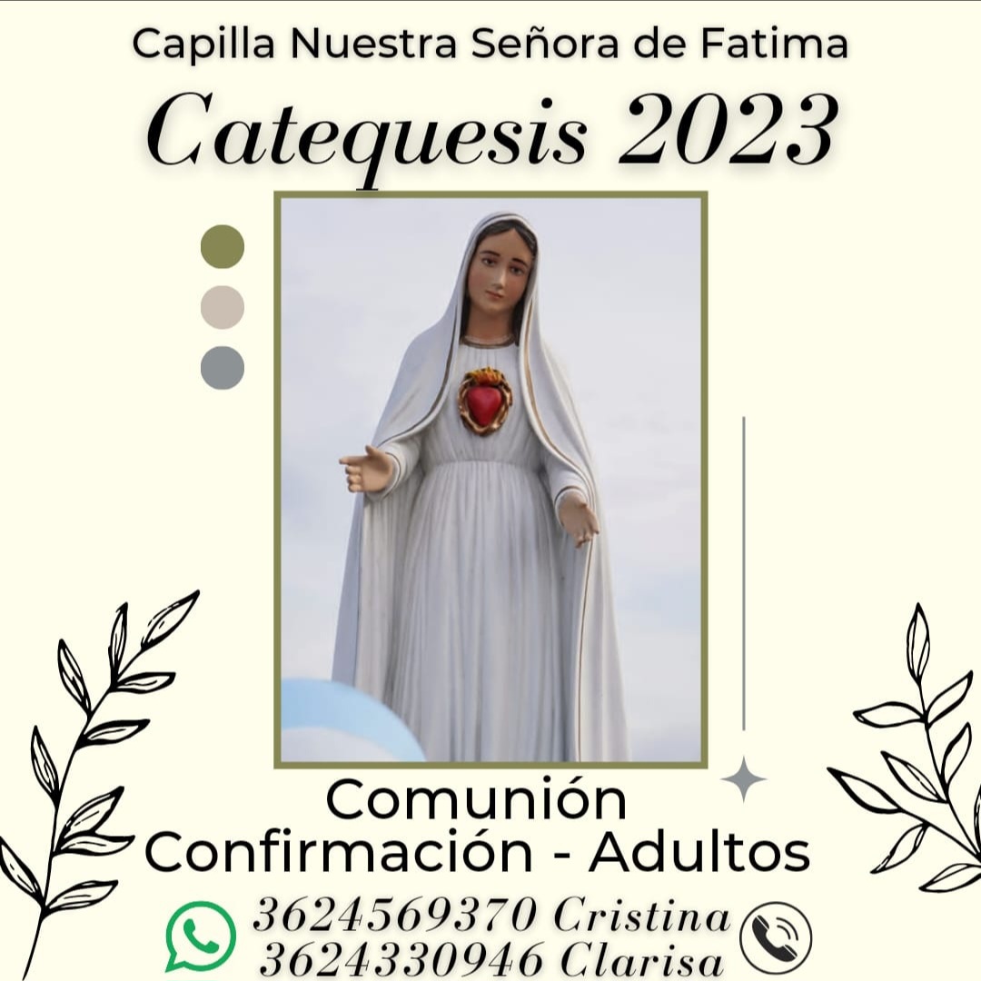 El grupo de adultos mayores te espera los sábados de 8:30 a 9:30 hs en la Capilla Ntra. Sra. De Fátima. Inicia el 18 de marzo. Si queres sumarte, comunícate al 3624 305396 ( Blanca) o al 3624 652420 ( Fiorella).