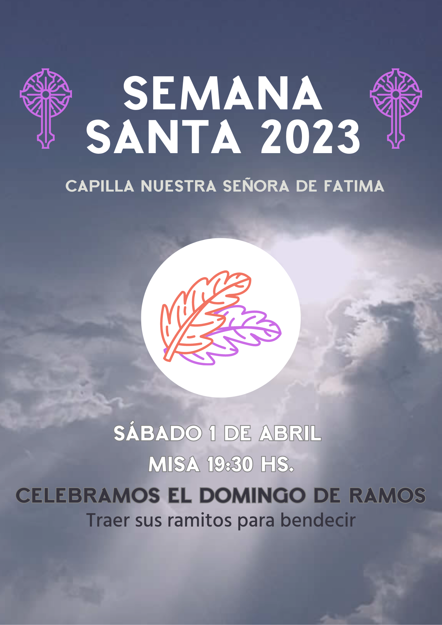 Celebramos el Domingo de Ramos. Misa a las 19:30 hs en la Capilla. Traer sus ramos para bendecir.