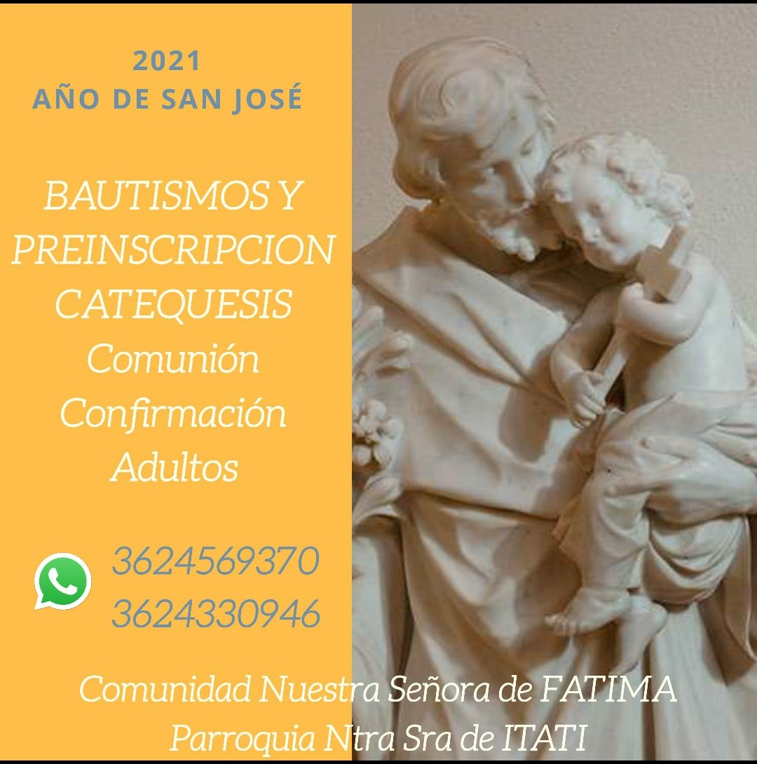 Para Bautismos y Pre-inscripciones para Catequesis de Comunión, Confirmación, niños y adultos, comunicate con nosotros: 3624 569370 o 3624 330946.